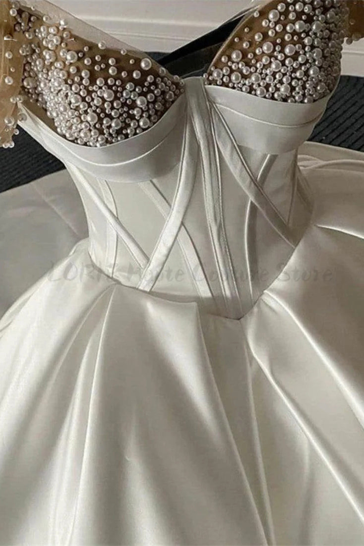 Sweetheart ivory Satin Pearls vestidos para mujer A-line Floor-Length Wedding Dresses 2025