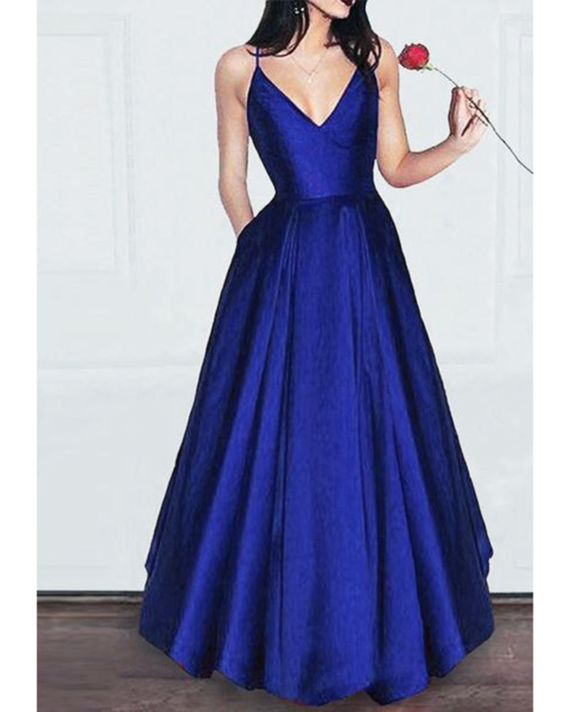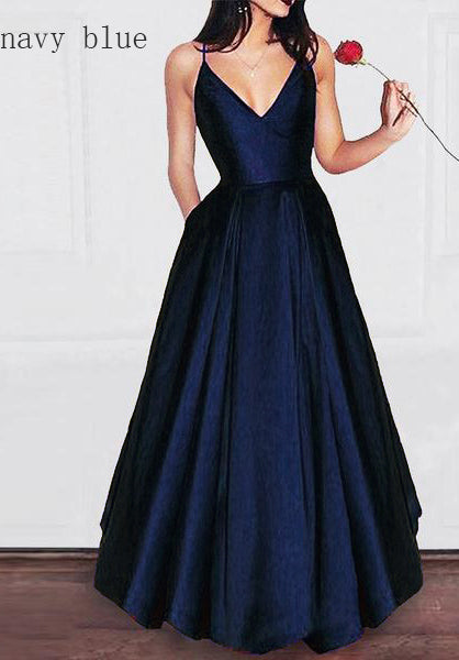 Royal Blue/Red Satin A Line Girls Prom Dress with Spaghetti Straps vestidos de niña
