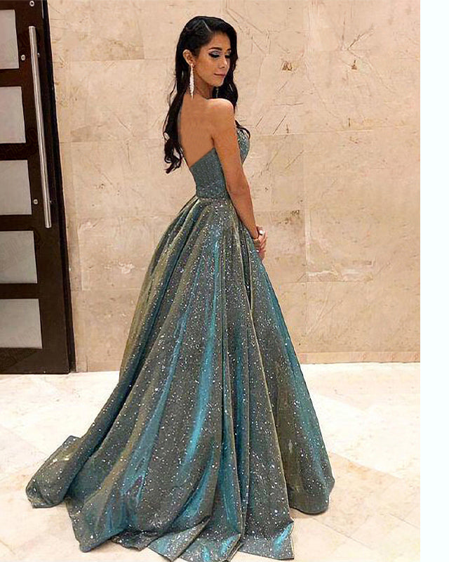 Sparkling sequin Puffy A line prom dresses ,Backless Peacock Prom Dress Strapless Shining Open Back party gown for women PL10422