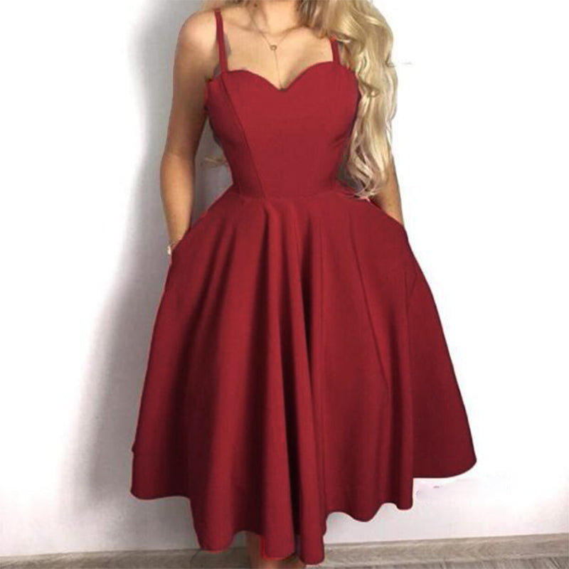 Red Spaghetti Straps Satin A Line Short Junior Prom Dress 8th Grade Cocktail Party Dress