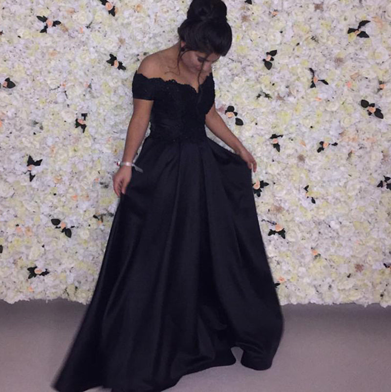 Elegant Black Lace Prom Dress Off the Shoulder A Line Women Evening Long Dresses vestido de formatura