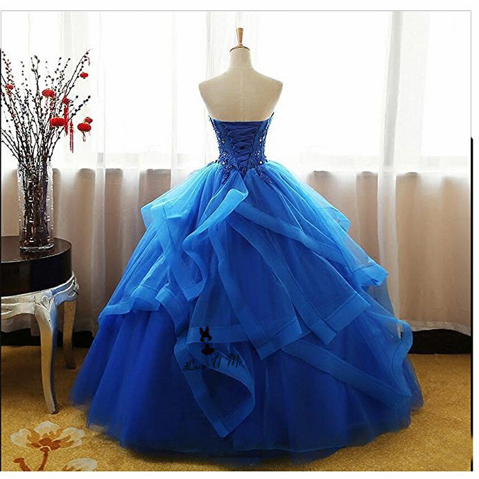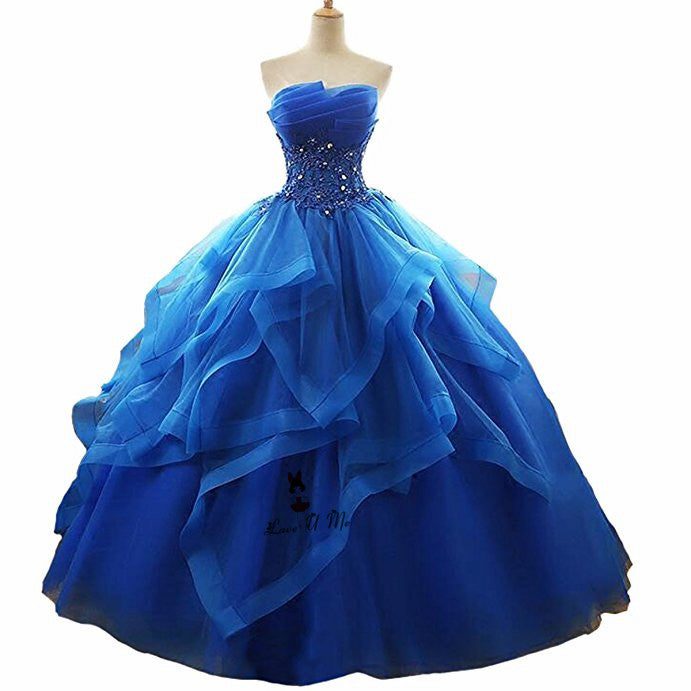 Gorgeous Blue Strapless Ball Gown Quinceanera Dresses Poofy Sweet 16 Birthday Party Gown