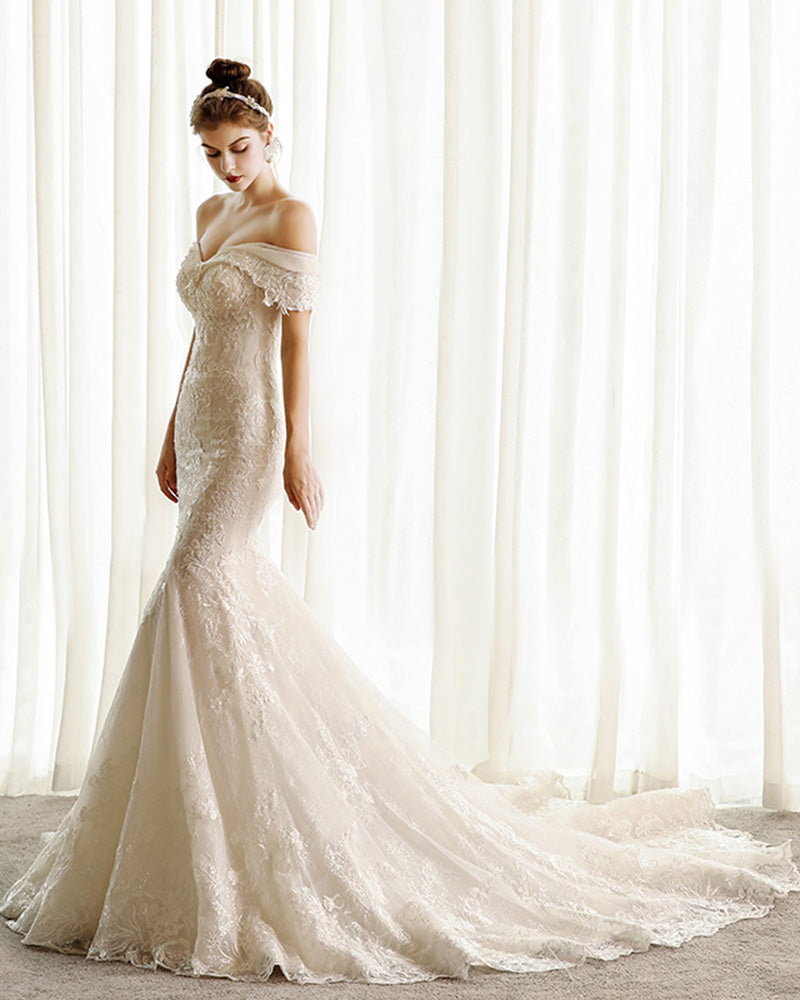 Elegant off white wedding dress 2022 mermaid sweetheart corset bride dresses lace wedding gowns for woman plus size