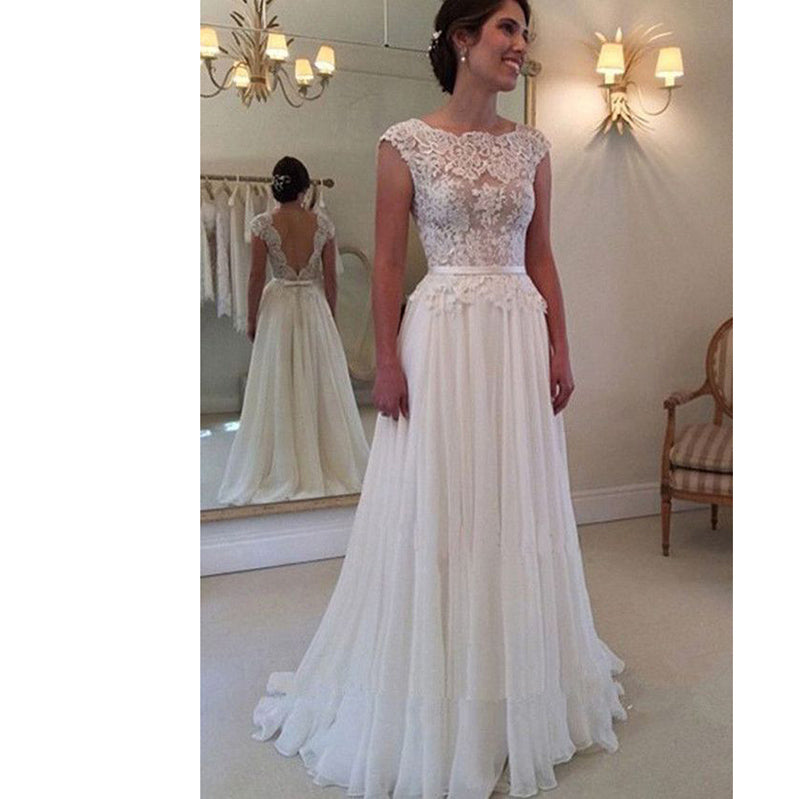 Glamorous Chiffon and Lace Appliques Cap Sleeves Beach Wedding Dresses Travel Boho Bridal Gowns,Vestido De Novias