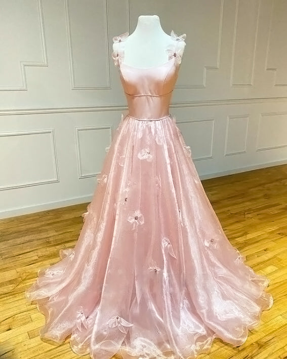 Gorgeous Lavender Organza Handmade Flowers Senior Year Girls Prom Dresses Long PL10207