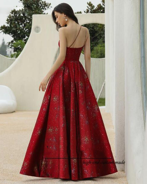 New Style Sexy One Shoulder New Year Christmas Red Evening Party Dress Floor Length Prom Gown PL01102