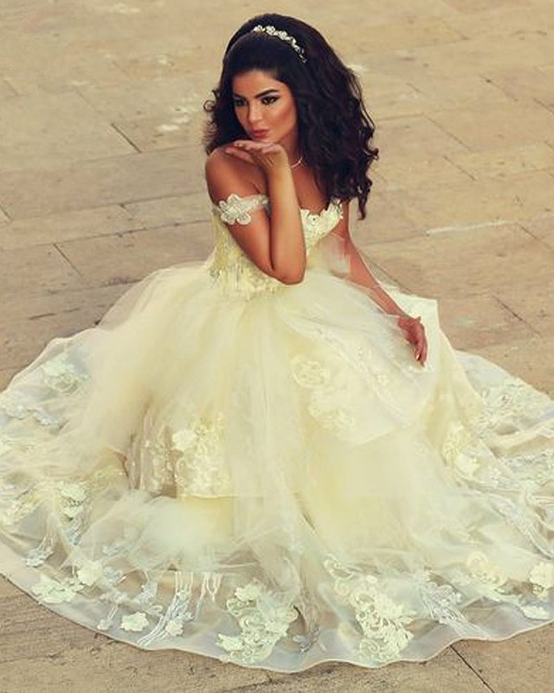 Off Shoulder Lace Yellow Girls Birthday Party Dress Swee 16 Gowns Quinceanera PL0519