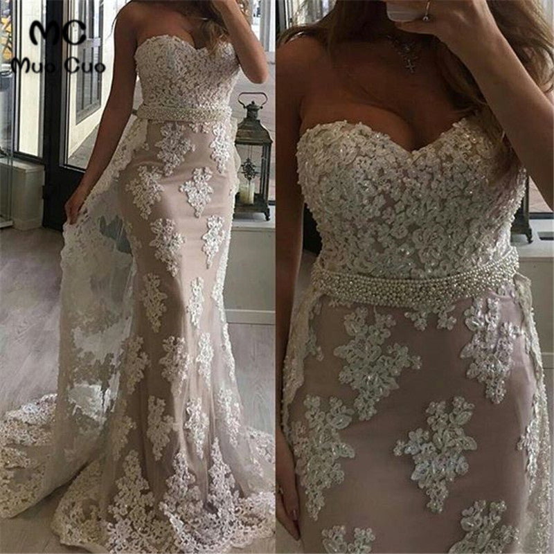 Pink/Ivory Lace Sweetheart Mermaid Prom Long Dresses 2019 PL8854