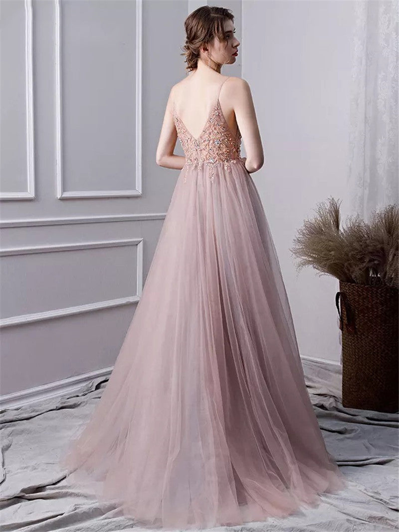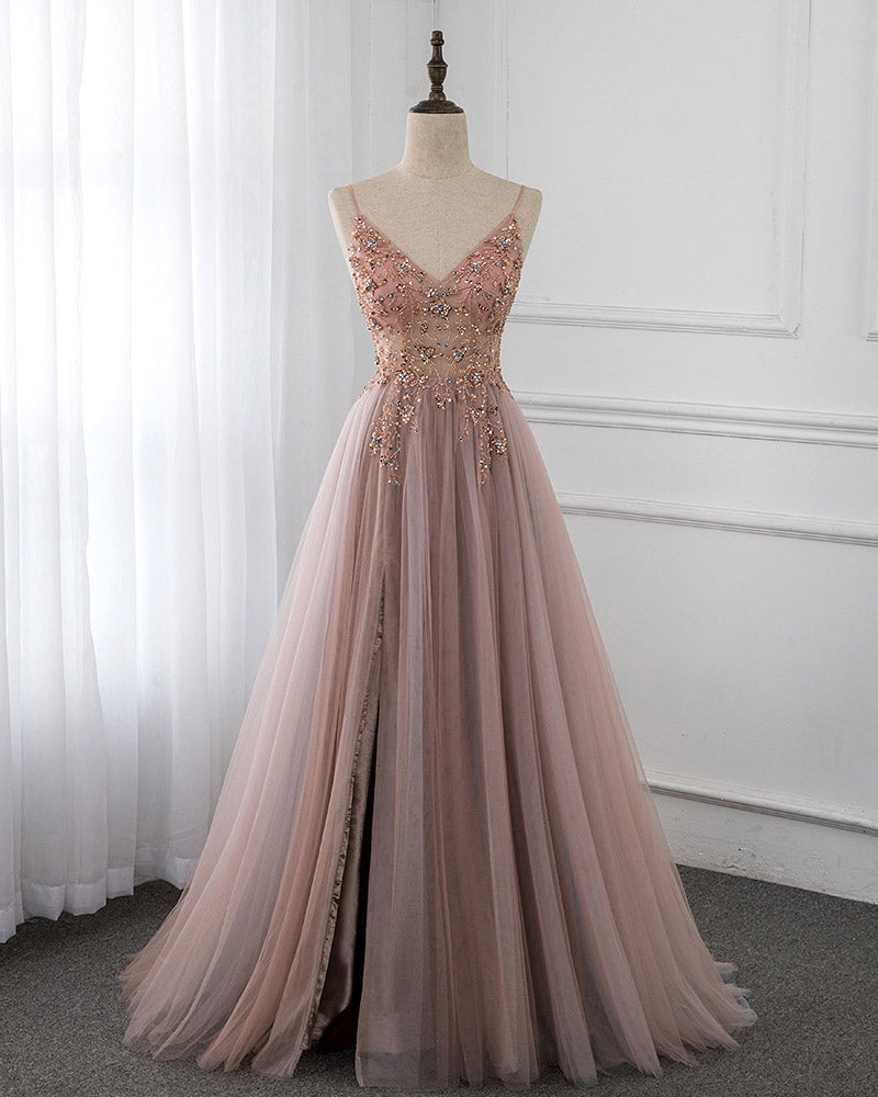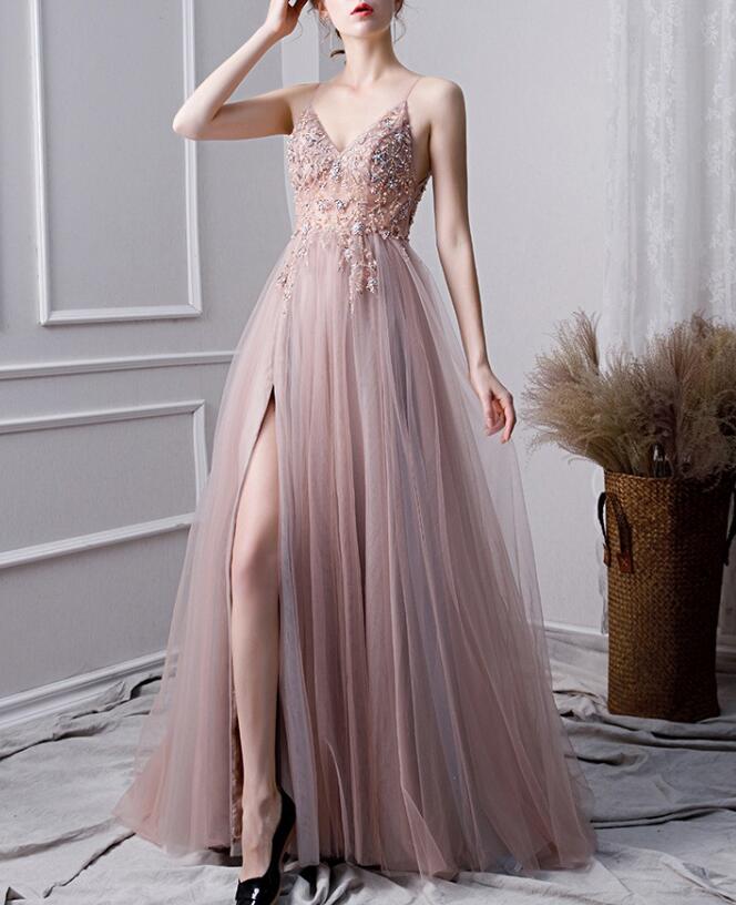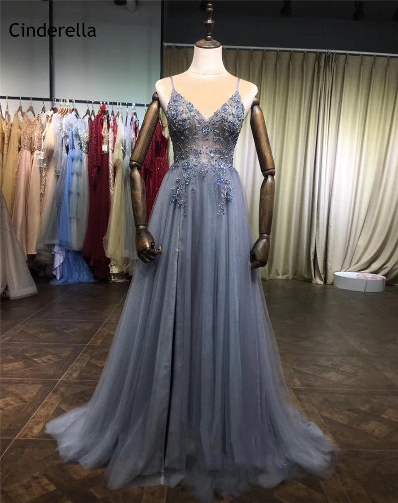PL1103 Fancy Sexy Tulle Slit Lace Beading Prom Dresses Long Gown Vestido De Festa 2022