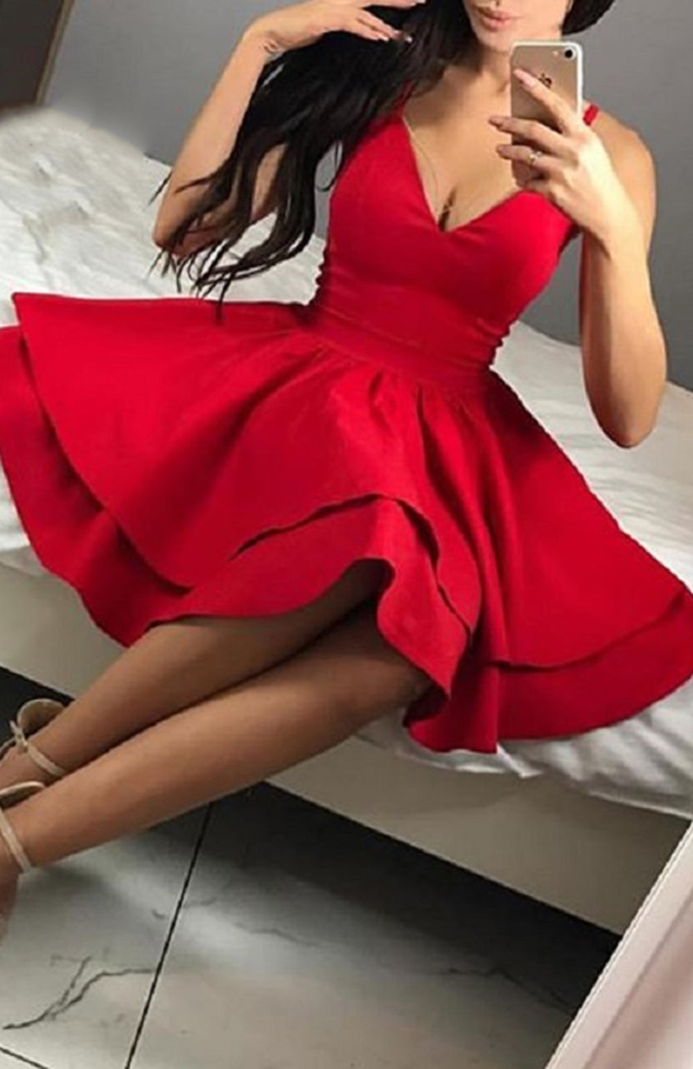 Red Cheap Homecoming Dresses 2022 Spaghetti Straps V Neck Short Prom Party Dresses Graduacion Custom Made vestidos cortos SP10113