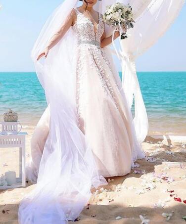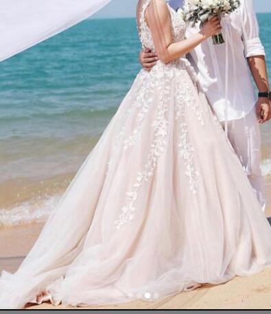 Romantic Nude /Ivory Lace Wedding Dresses ,Short Train Robe Mariage Gown WD10115