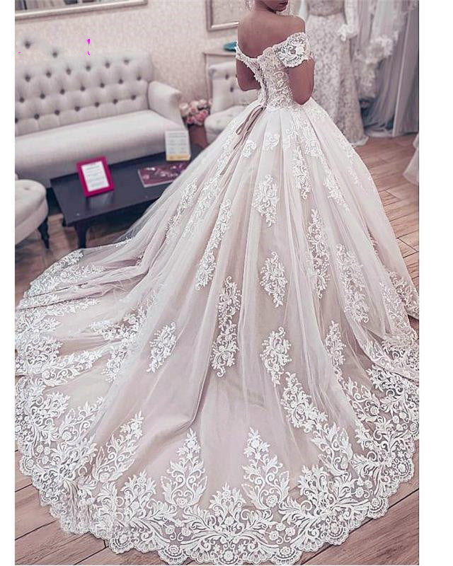 Romantic Off the Shoulder Women Lace Wedding Dress Ivory / Blush Pink Ball Gown Bridal Gown WD01207