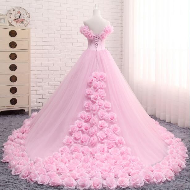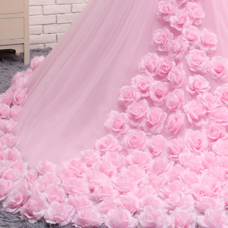Romantic Pink Rose Wedding Dress Princess Ball Gown Quinceanera Debutante Gown Girls Sweet 16 Gown WD878