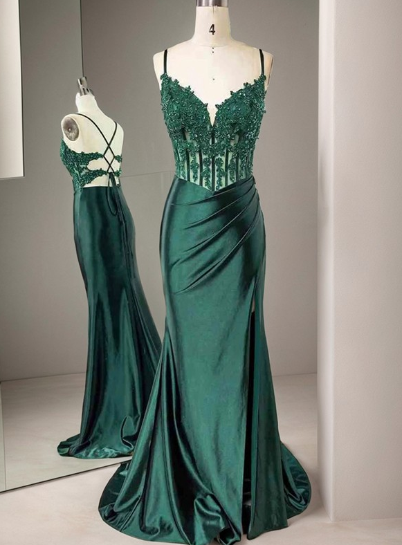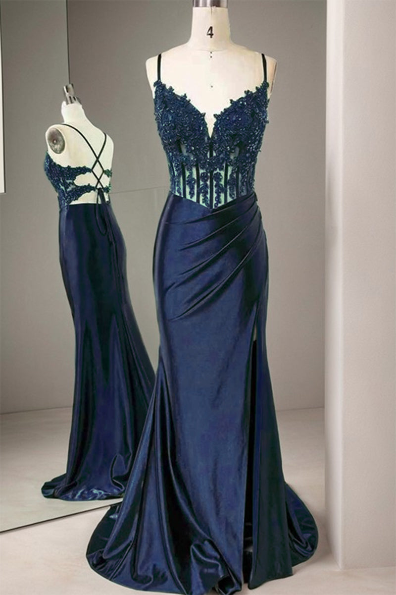 Royal Blue Prom Dress 2025 corset Lace satin Gown PL2532