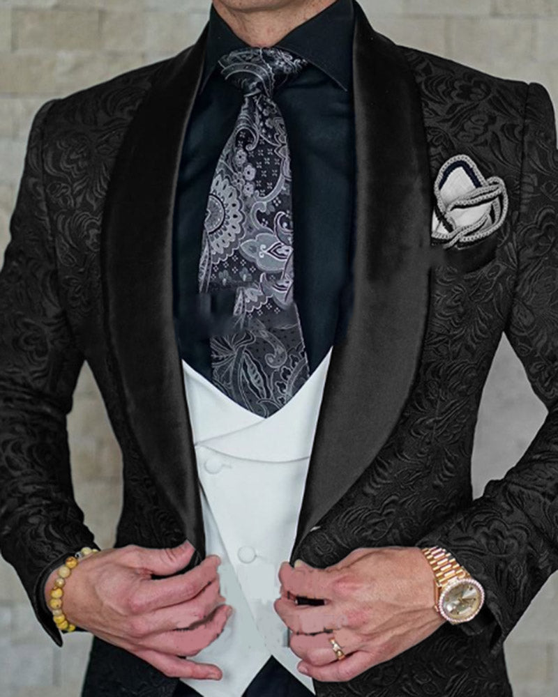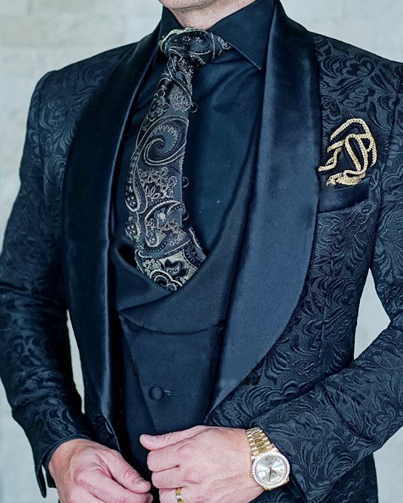 Royal Blue Shawl Lapel Pattern Wedding Suits Groomsmen Tuxedo SP451(jacket+vest+pants)