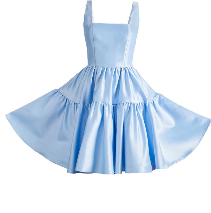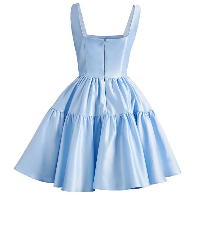 Ruffles A line Satin Baby Blue Short Homecoming Dress SP0508
