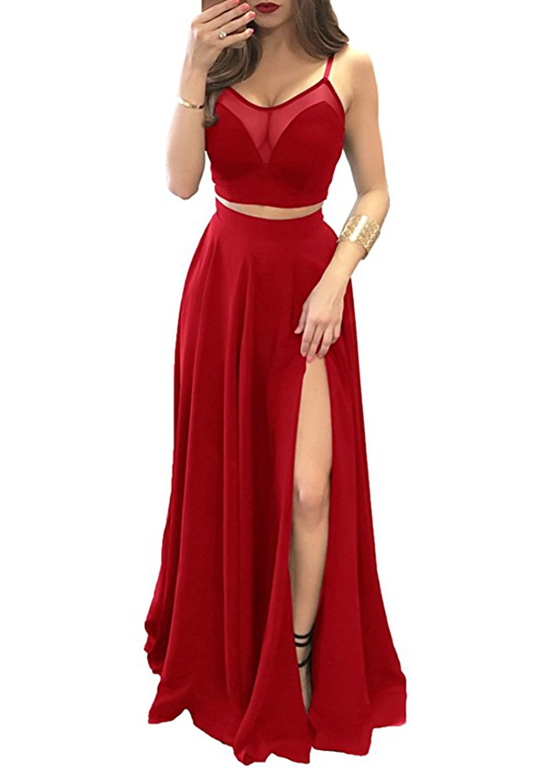 Sexy Crop Top Black Prom Dress Spaghetti Straps Long Evening Party Gown Two Pieces Vestido De Festa