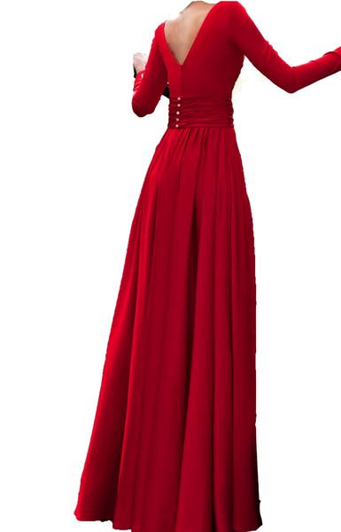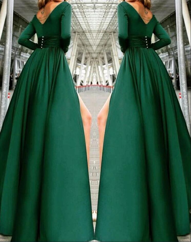 Sexy Long Sleeves Evening Party Dress with Slit Formal Gown