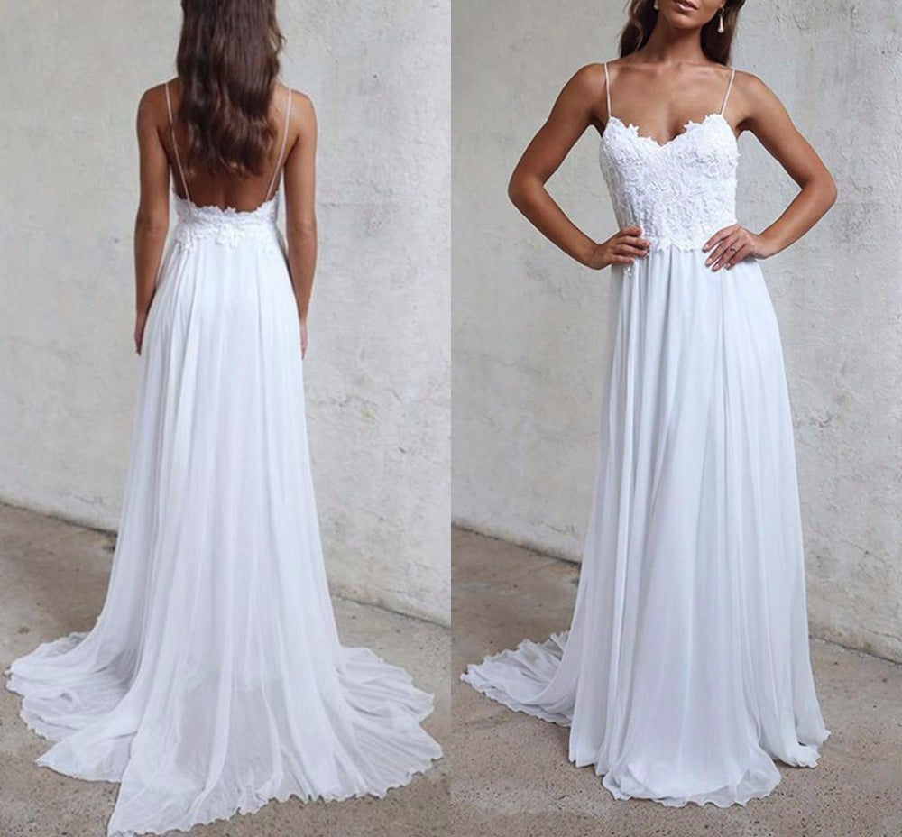 Sexy Spaghetti Straps Boho Beach Wedding Dresses Lace Appliques Bohemian Bridal Dresses