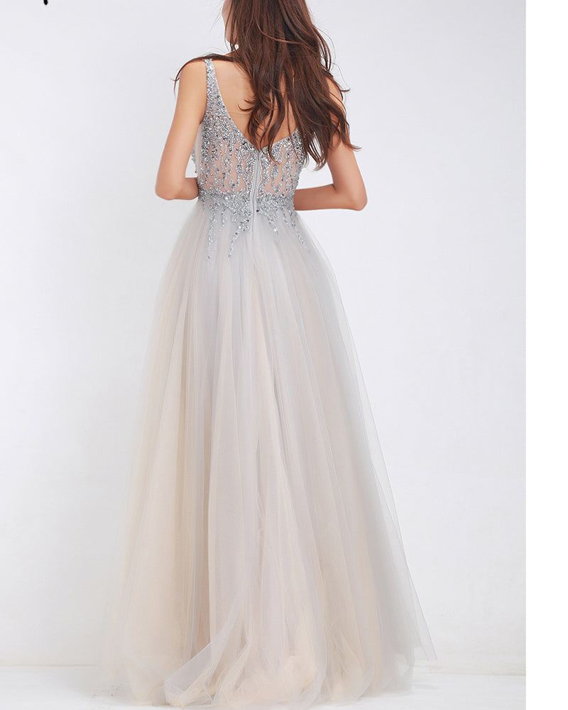 Siaoryne 2020 Prom Dress sexy Light Illusion Tulle crystal V-Neck Sleeveless A-Line Long Prom Party Woman Dress