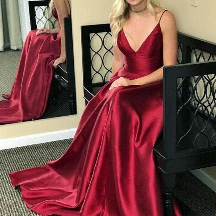 Siaoryne Burgundy Spaghetti Straps Long Prom Dresses,Girls formal gown