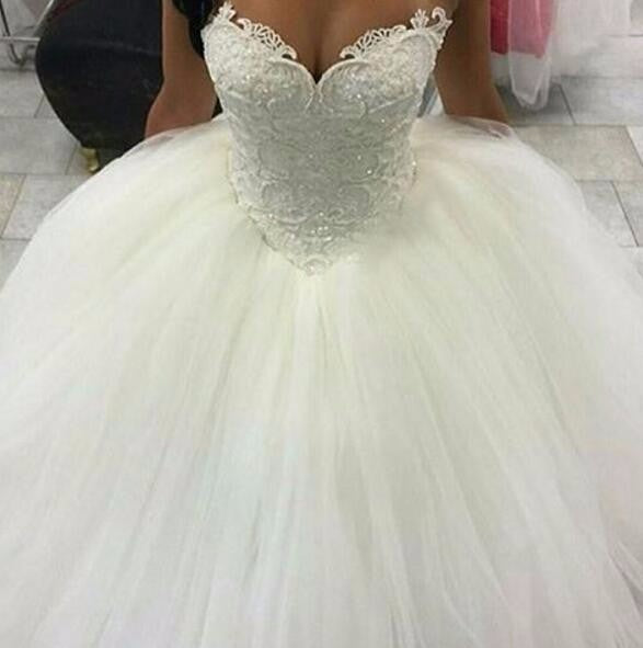 Glamorous Princess Corset Bridal Gown Custom Made Pearl Wedding Dress Ball Gown Lace Bridal Gowns