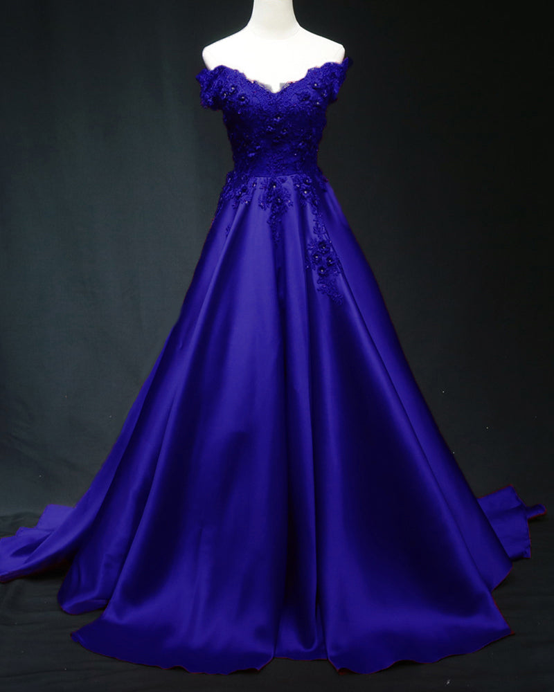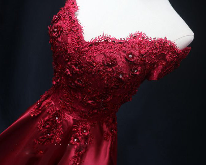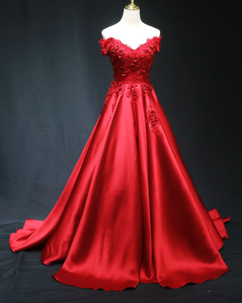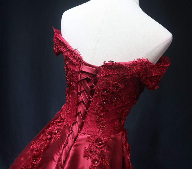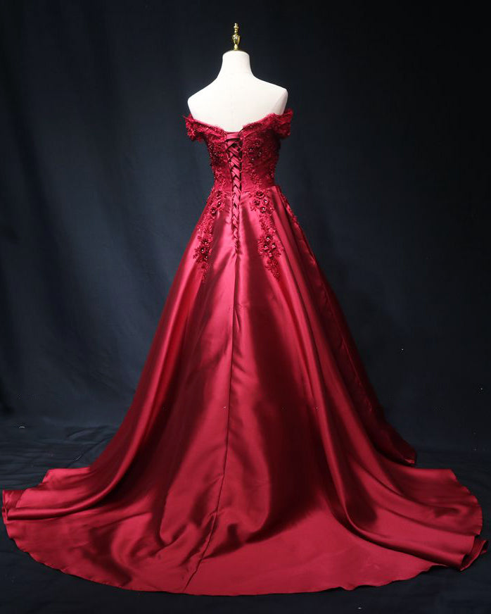 Siaoryne Elegant Burgundy Red Off Shoulder Long Prom Dress , Lace Satin Wedding Party Dress PL08102