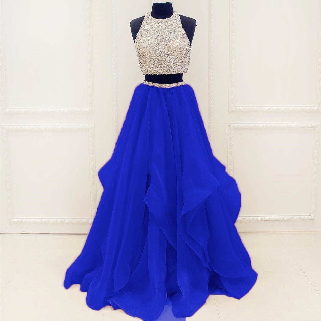 Siaoryne Halter Beading Crop Top Two Pieces Prom Dress formal gowns evening party dresses