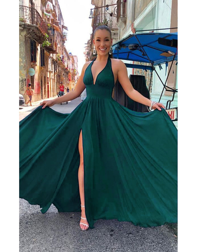 Siaoryne Halter Long Backless Long Bridesmaid Dresses Long Women party Gown PL232