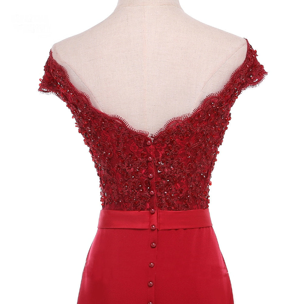 Siaoryne LP003 Red Lace Mermaid Bridesmaid Dress off the Shoulder Wedding Guests Dress