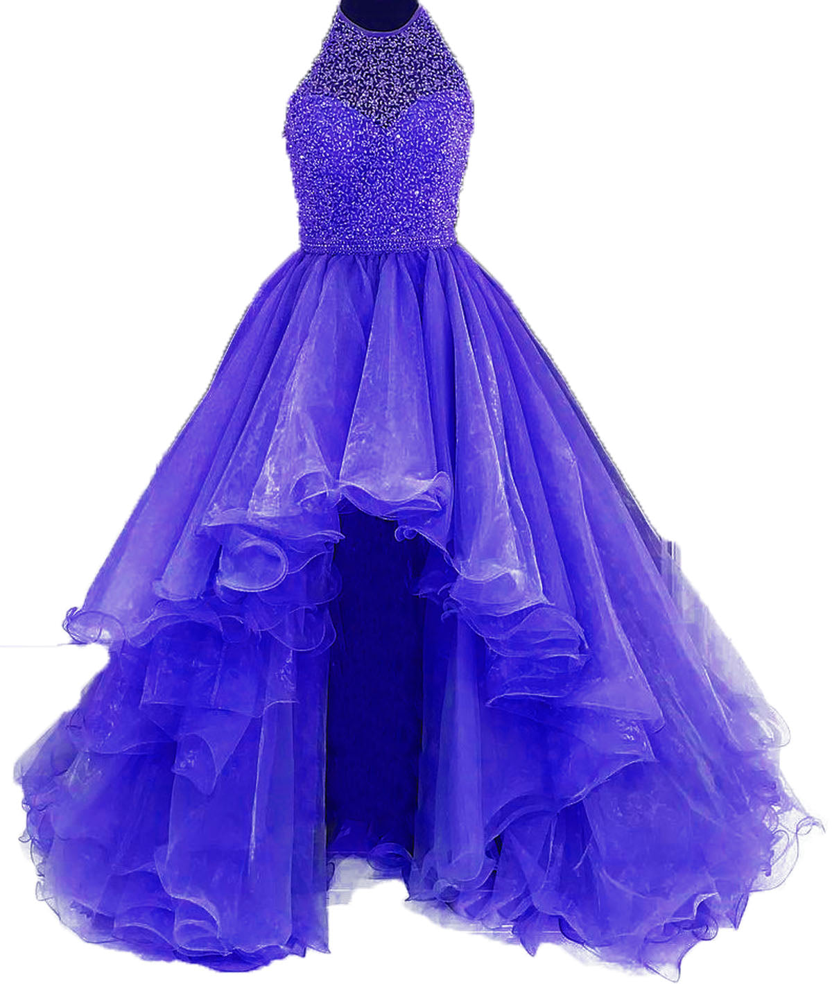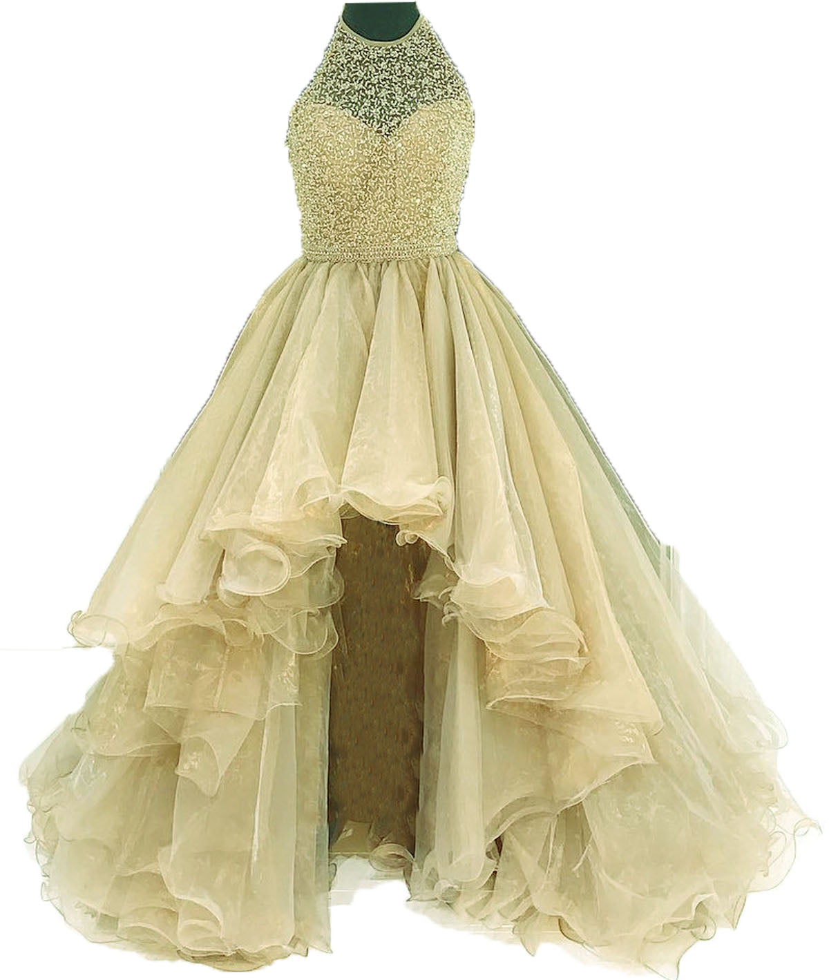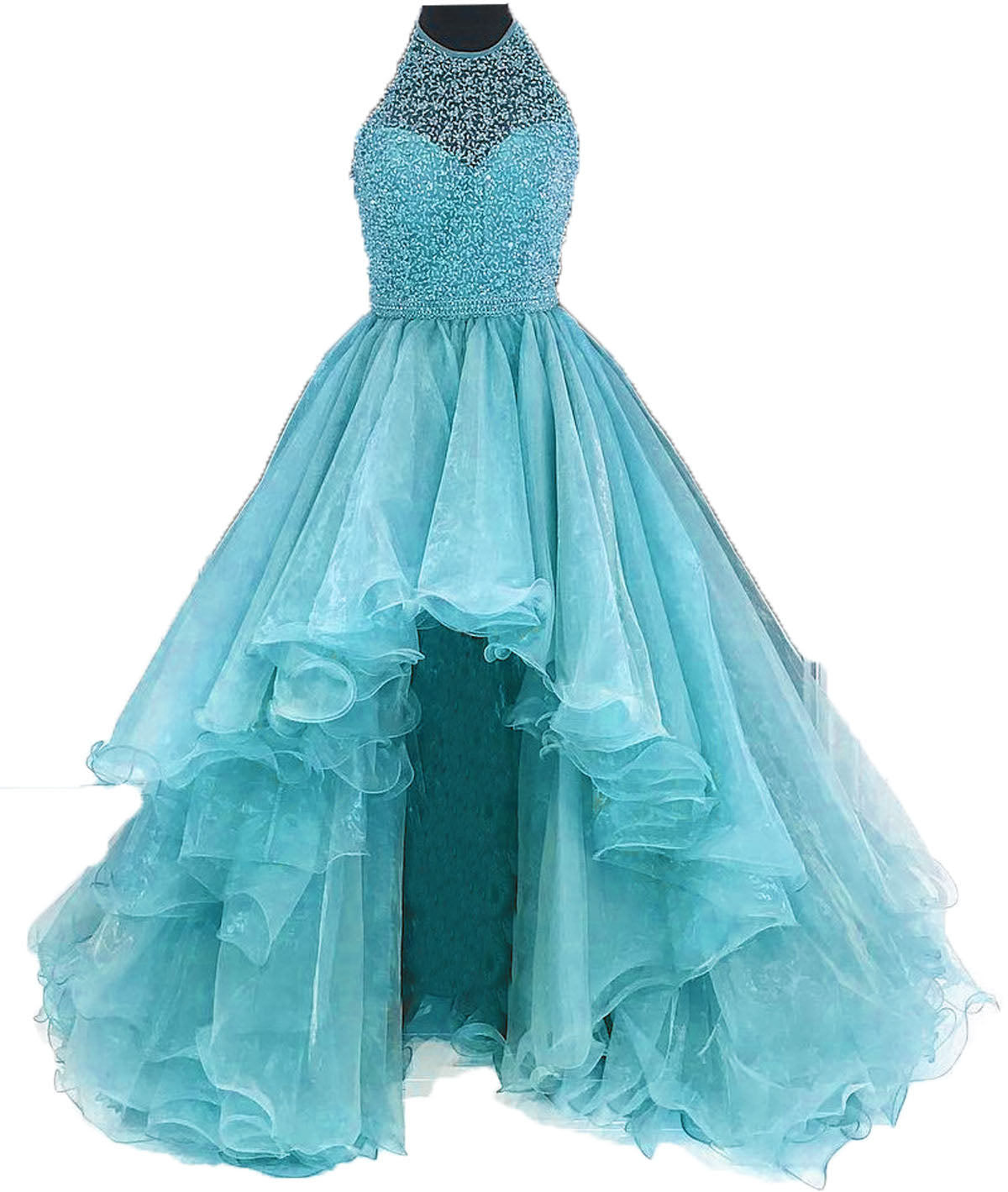 Siaoryne LP170819 O Neck High Beading Ball Gown Evening Dress High Low Front Short Long Back Prom Gowns Mint Champgne