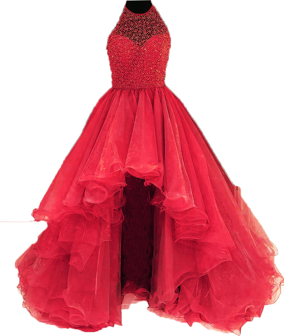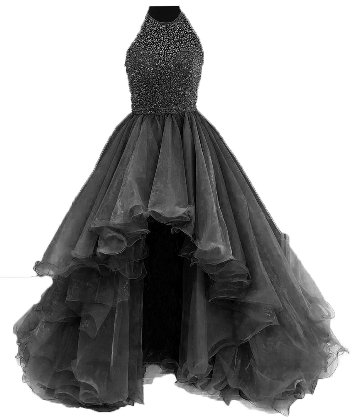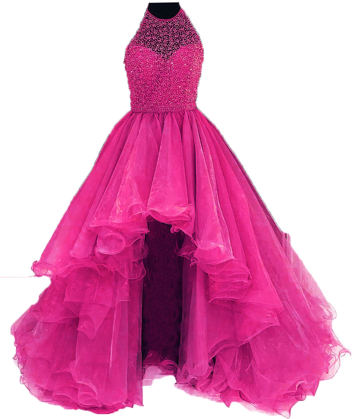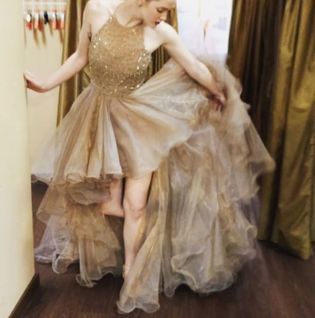 Siaoryne LP170819 O Neck High Beading Ball Gown Evening Dress High Low Front Short Long Back Prom Gowns Mint Champgne