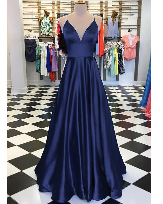 Siaoryne PL5014 Royal Blue Spaghetti Straps A Line Satin Long Prom Long Dress 2022 Gown