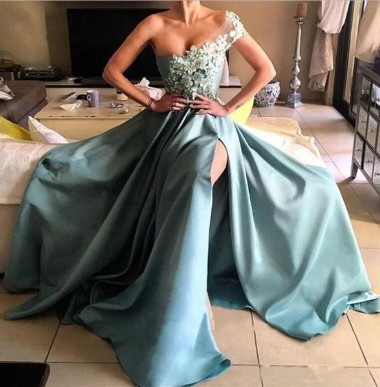 Siaoryne PL5411 One Shoulder Women Lace 2020 Evening Dresses Long with Sexy Split Leg