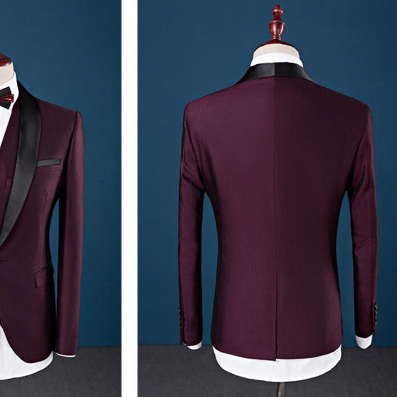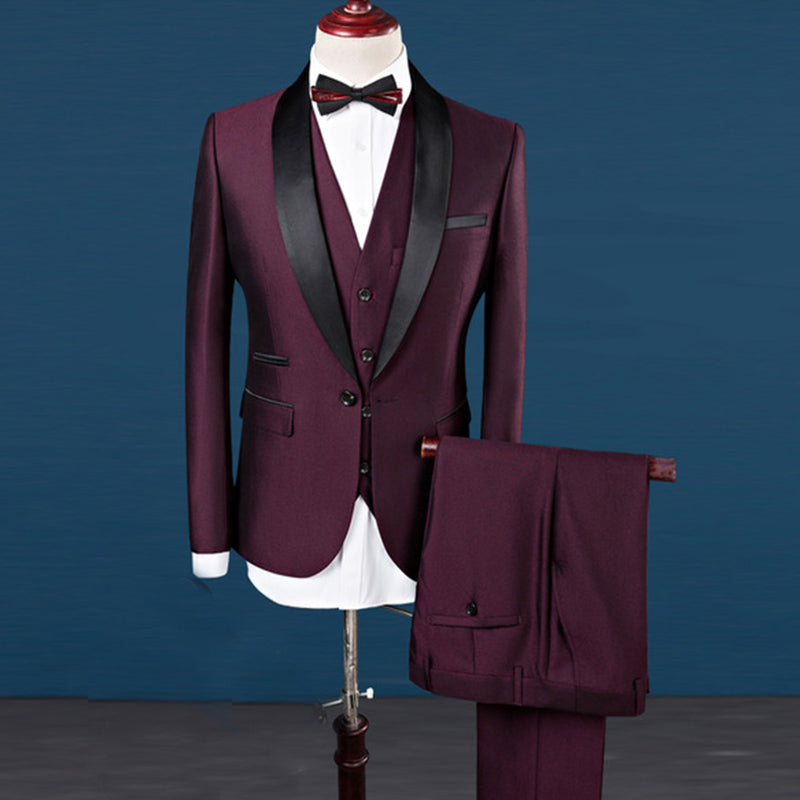 Suits Men costume homme mens suits Wine Tuxedos 2018 3 Pieces(Jacket+Vest+Pant)