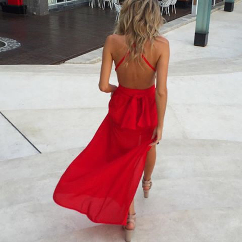 Trendy Long Spaghetti Chiffon Slit Red Dresses Women Formal Evening Gown vestido longo