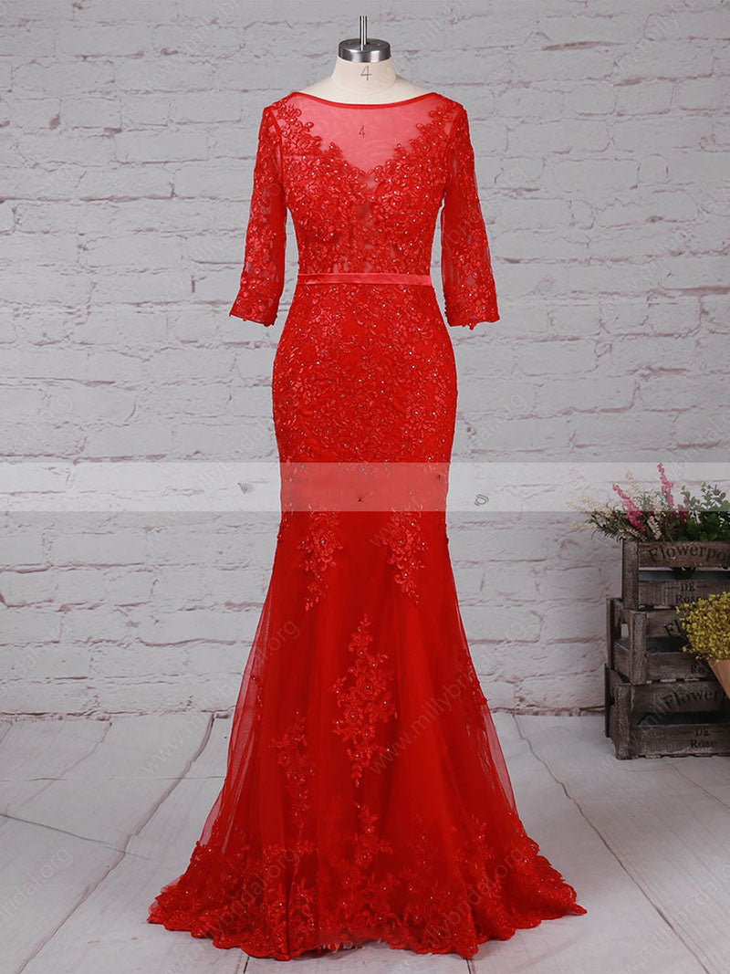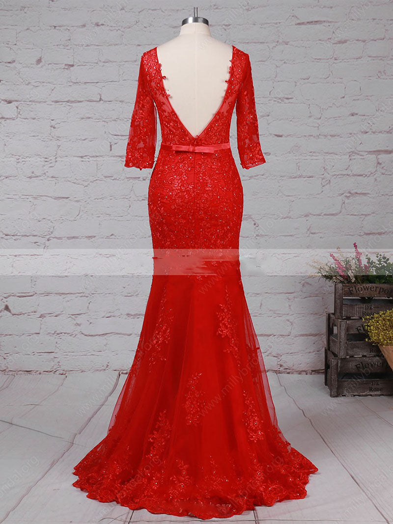 Trendy Red Lace Prom Dress Mermaid Red Formal Gown Mermaid Party Gown vestido longo