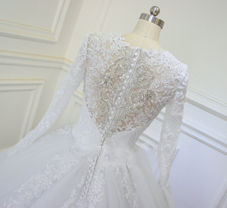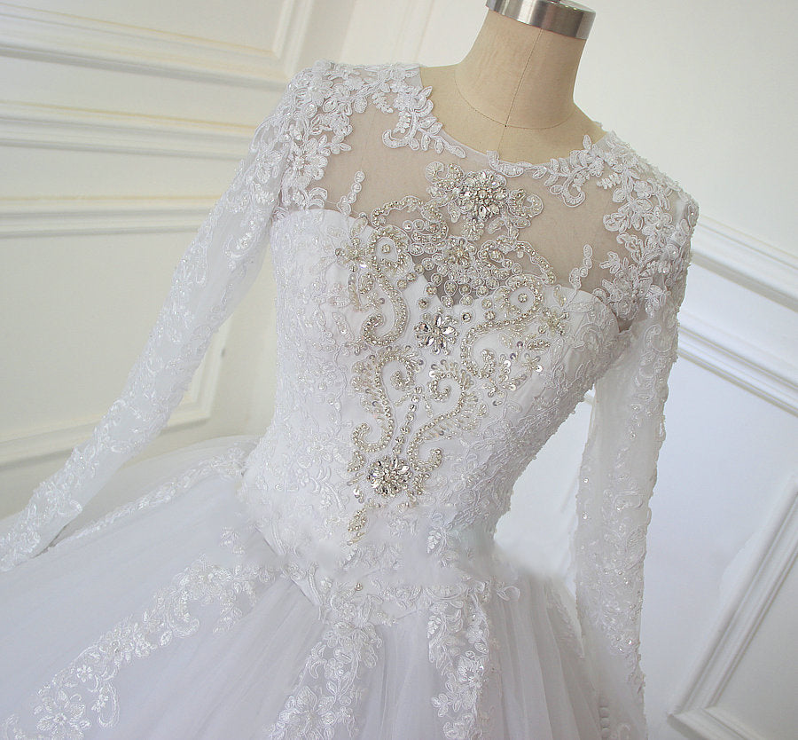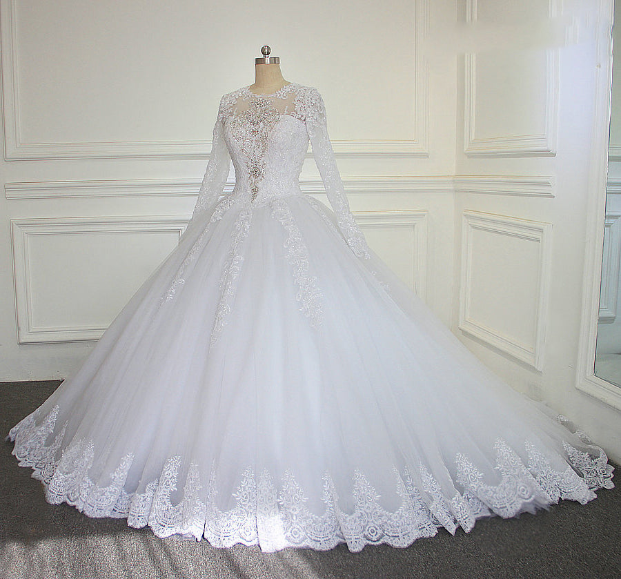 New Vintage Long Sleeves Lace Ball Gown Bridal Wedding Dress WD6642