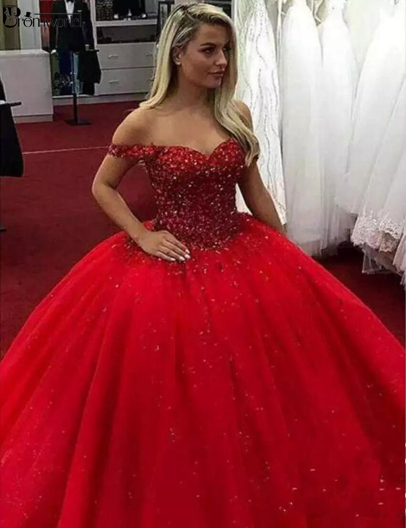 Red Off The Shoulder Sparkling Beading Ball Gown Prom Dress Quineanera Dress 2020 PL0723