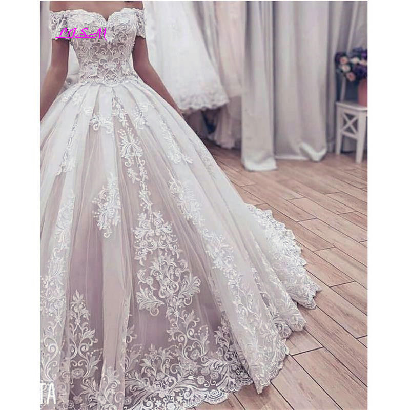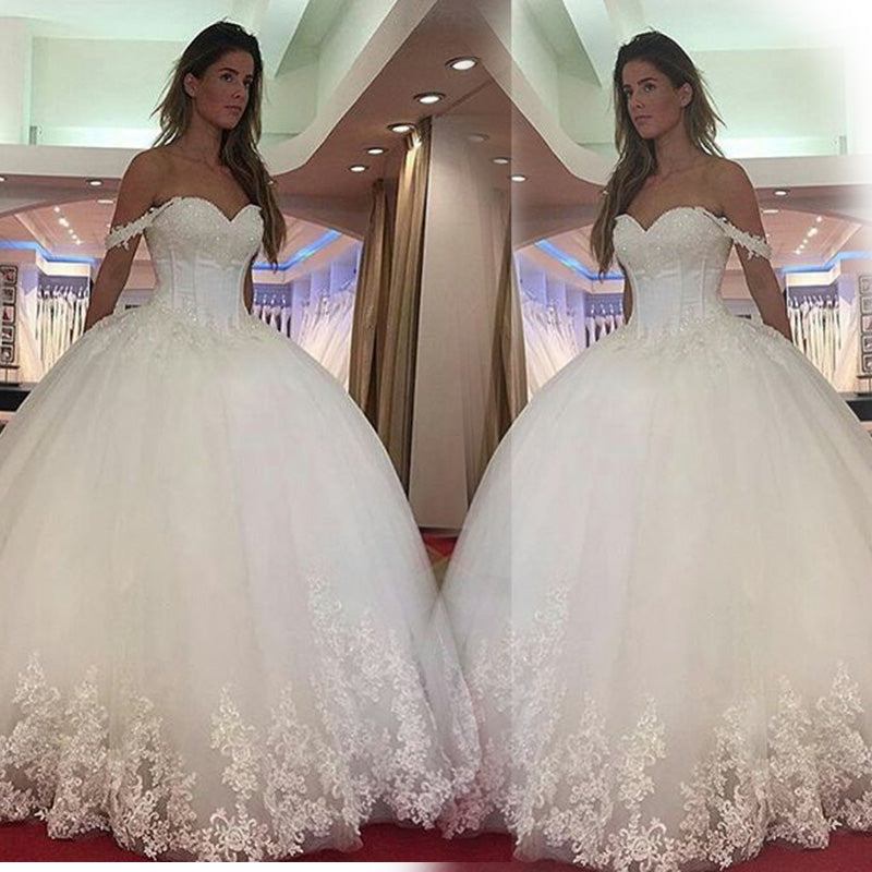 Romantic Lace Ball Gown Bridal Dresses Custom Made off the Shoulder Princess 2018 Wedding Gown Robe De Mariee WD5543