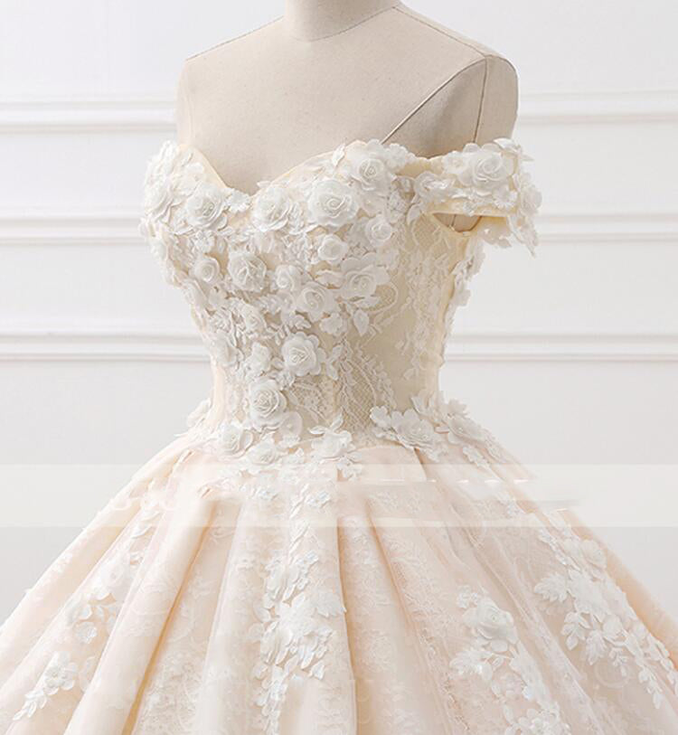 Romantic Off Shoulder Princesss Lace Ball Gown Wedding Dress 2021 with Flowers Robe De Mariee WD01123