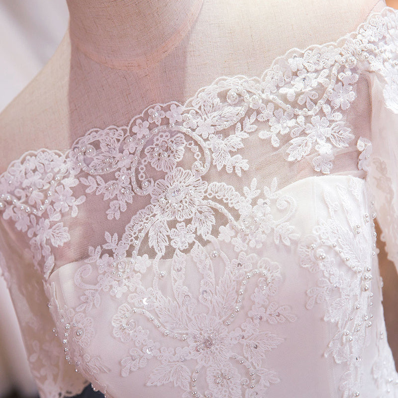 Romantic Off Shoulder Women White Lace Beaded Wedding Dresses A Line Bridal Gown WD3312