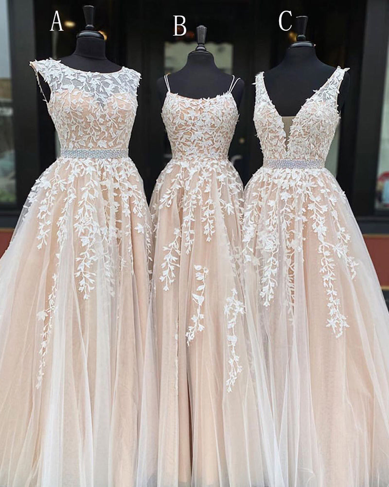 Romantic Pale Pink Ivory Lace and Tulle Formal Dress for Women V Neck Receptaion Wedding Gown WD10914