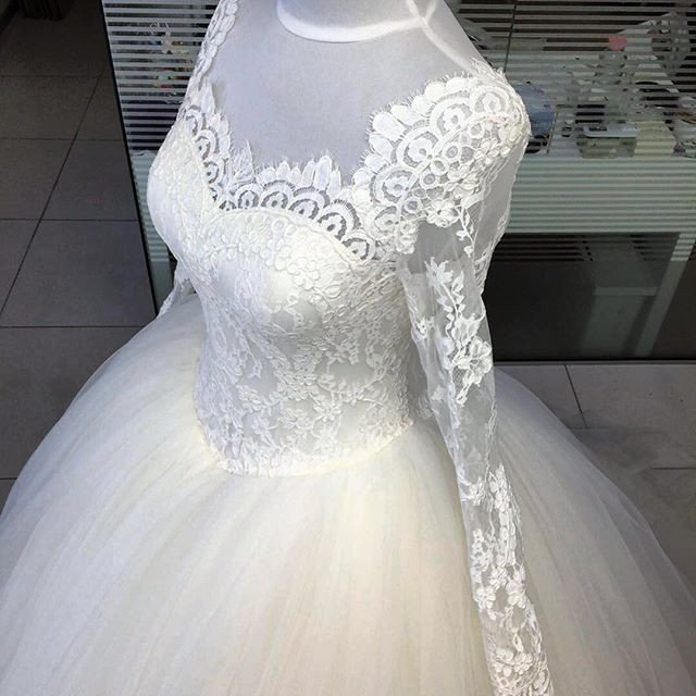 Romantic Lace Vintage Bridal dresses Ball Gown with Long Sleeves WD665