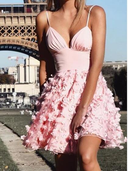 Sexy Spaghetti Straps White Prom Dress Short Homecoming Graduation Gown with Flowers SP05272