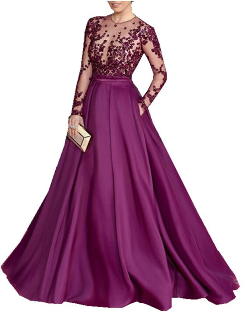 Siaoryne 2022 Silk Chiffon Long Sleeves Vintage Evening Gowns Prom Dresses with Lace Beaded
