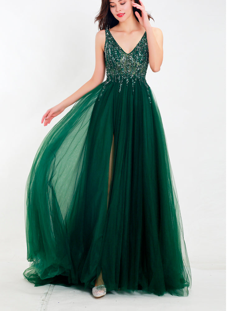 Siaoryne 2020 Prom Dress sexy Light Illusion Tulle crystal V-Neck Sleeveless A-Line Long Prom Party Woman Dress