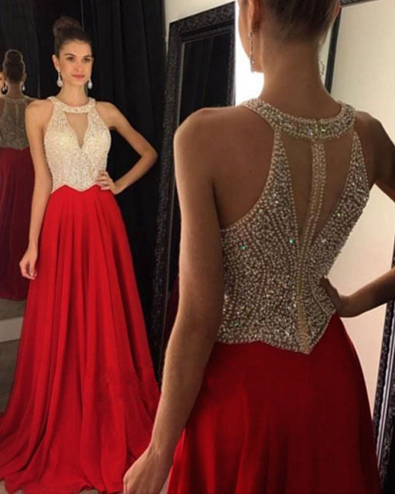 Siaoryne LP0919 Halter Beading Prom Dress with Beading Blue/Red/Black Long Formal party Dresses Long