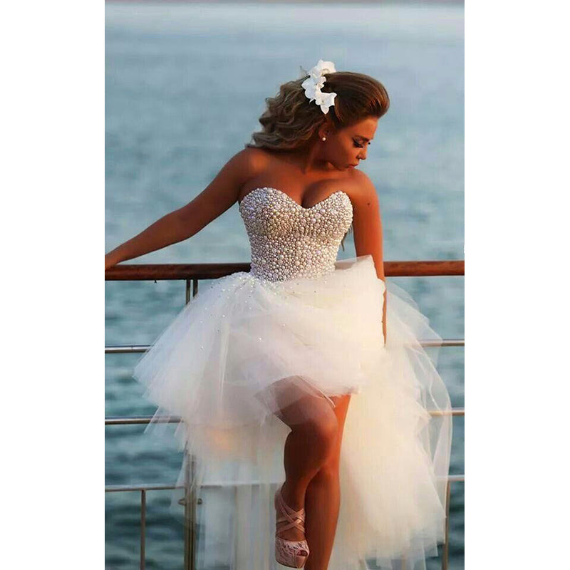 Siaoryne LP0926 high Low Wedding Dresses Beach with Pearl Front short Long Back bridal Gowns