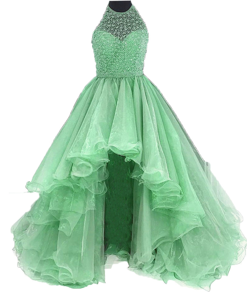 Siaoryne LP170819 O Neck High Beading Ball Gown Evening Dress High Low Front Short Long Back Prom Gowns Mint Champgne